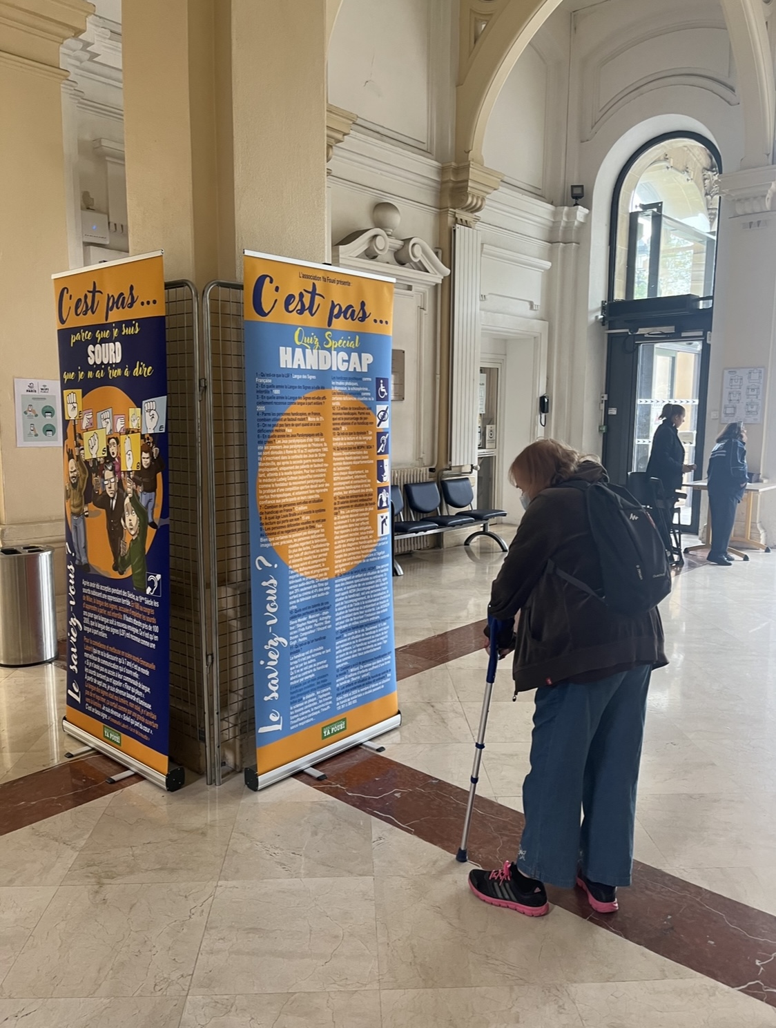 Après de nombreux travaux, la Mairie du 19e est quasiment parfaitement accessible PMR pour les espaces accueillant du public. Pour les autres types de handicap, les équipes de la Mairie travaillent sur la formation des agents à l’accueil de personnes handicapées, la signalétique du bâtiment, la mise en accessibilité de sa communication et de ses assemblées.