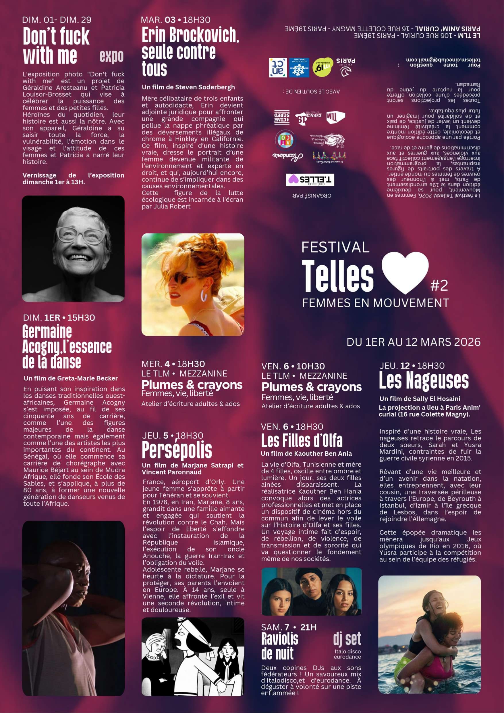 Le festival TellesM se clôture avec une projection-débat du film Les Nageuses. Ce long-métrage retrace le parcours de deux jeunes sœurs réfugiées, entre exil, courage et reconstruction, jusqu’à leur participation aux Jeux Olympiques. Une soirée de clôture qui invite à croiser les thématiques du festival : résilience, liberté et puissance des trajectoires féminines.