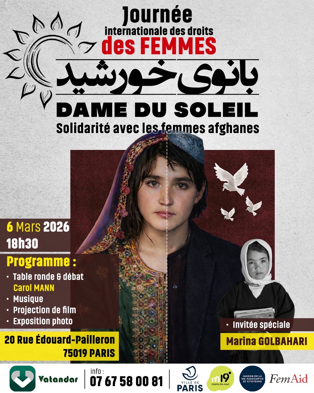 La MACVAC vous propose en partenariat avec l'association VATANDAR, une soirée spéciale Femmes afghanes, « DAME DU SOLEIL » avec au programme :