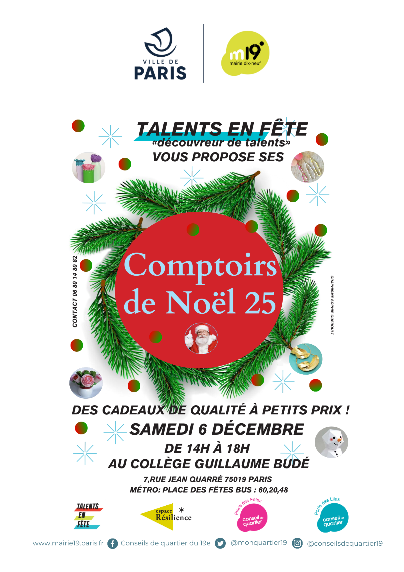 L'association Talents en Fête organise ses "Comptoirs de Noël" le samedi 6 décembre, au collège Guillaume Budé (7 rue Jean Quarré).
